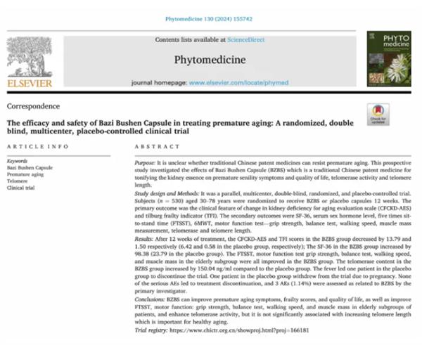 刊登在国际顶级期刊《Phytomedicine》上的一系列中药临床磨砺遵守,就是其中蹙迫的一步。据悉此项东说念主体临床由中医科学院西苑病院连合8家中心开展,科研东说念主员对530名志愿者进算作期3个月的干扰,再次说明“八子补肾胶囊”有助于改善老龄东说念主群的一些列软弱症状,包括不限于毛发皮肤、骨骼肌和记念力等。