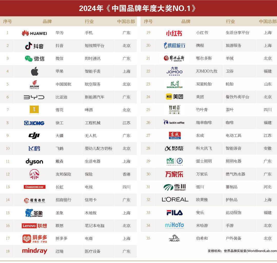 2024年“中国品牌年度大奖”揭晓,35个品牌入选 细则